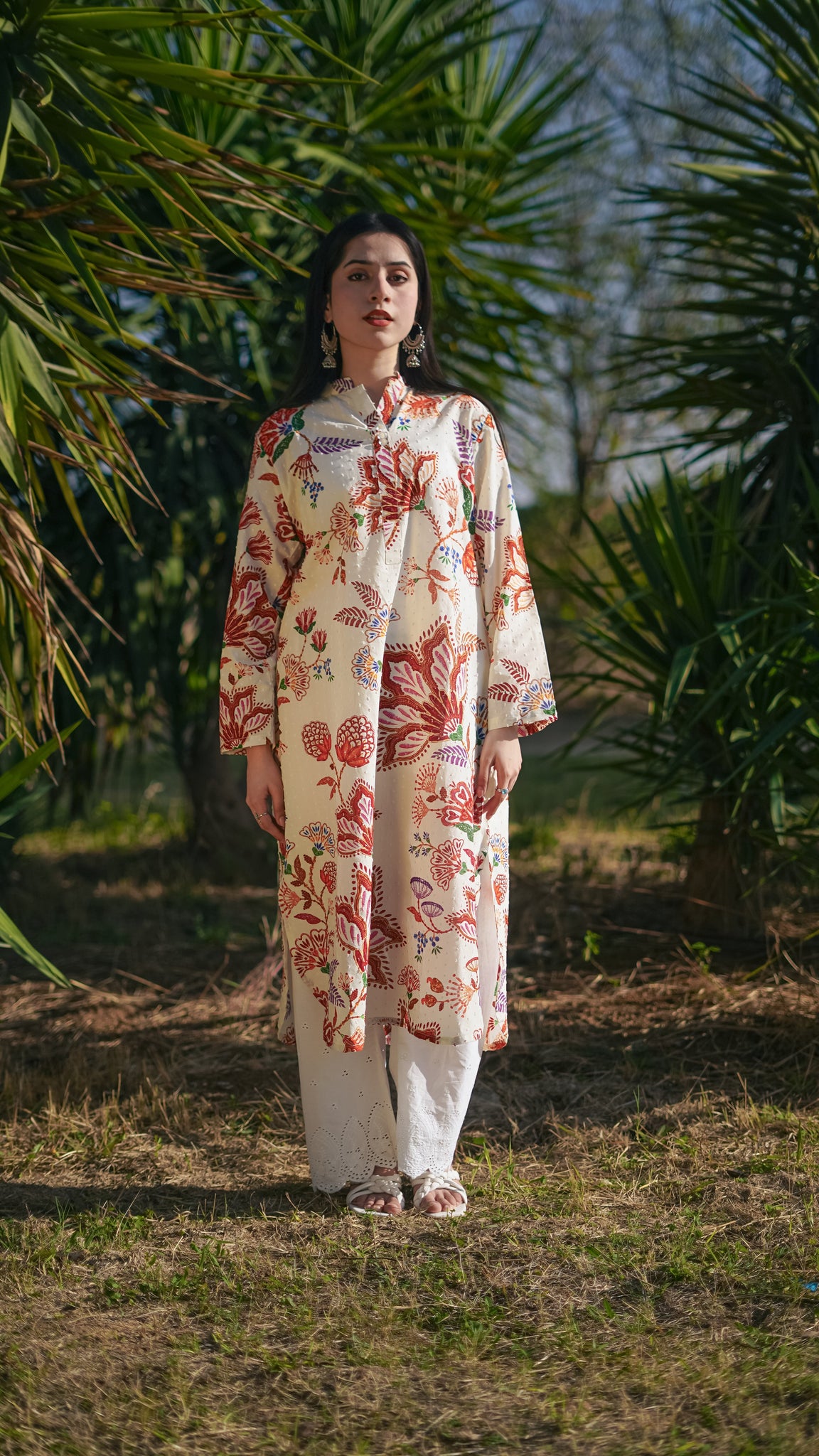 Introducing Mahnoor, a vibrant and graceful 2-piece outfit that brings a fresh touch to your wardrobe. Designed with a perfect balance of elegance and color, this ensemble features a beautifully crafted lawn shirt with intricate detailing, paired with matching trousers for a refined yet trendy look.